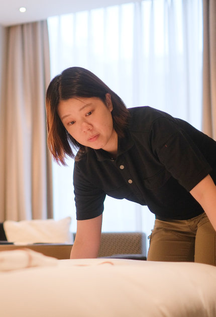 清掃の分野でもっとスキルを磨きたいと思っていた時、前職で一緒に働いていた方よりお声をかけて頂き、客室清掃と清掃責任者の経験を活かせると思い応募し、入社しました。