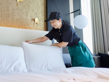 ホテル客室清掃は、お客様が気持ちよく滞在できるよう客室を整える仕事です。ベッドメイク、浴室・トイレの清掃、アメニティ補充、ゴミ回収、床の清掃など、決められた手順に沿って客室全体を仕上げていきます。
